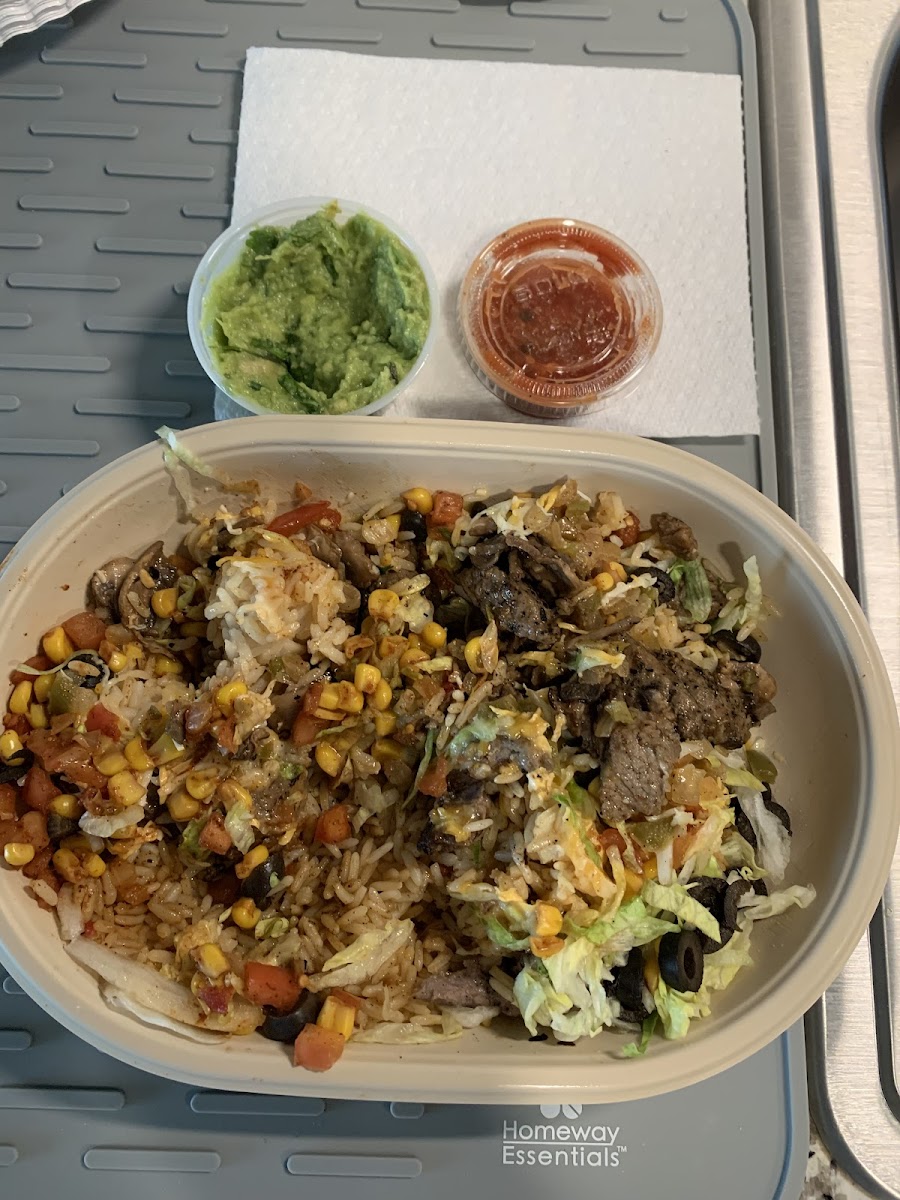 Although the staff is nice - Portions are very small. I asked for extra rice, and it was less than I would have gotten at a regular moe’s, without asking for extra. Barely got any Chicken. Food was good though! Options are limited on the premises. Take out only. No in restaurant dining. UPDATE: went back the next day, and staff were beyond generous with their food. I got a massive bowl from them. It comes down to the staff and how busy it is. Don’t be afraid to for more! Staff was even nicer than before!